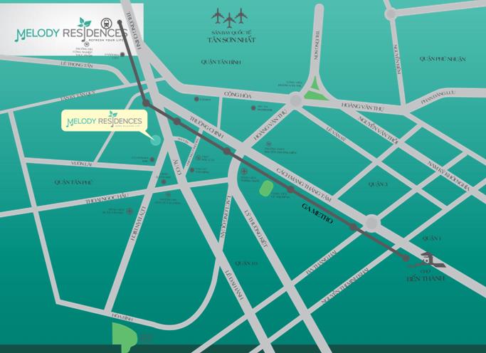 Melody Residences tọa lạc tại số 16 Âu Cơ, Phường Tân Sơn Nhì, Quận Tân Phú, Tp.HCM.