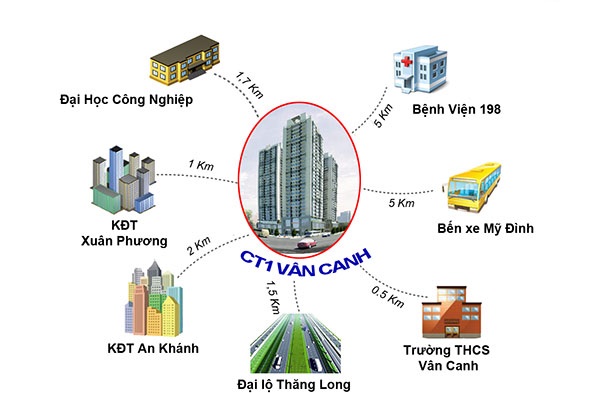 Tòa nhà CT Number One nằm ngay tại trung tâm Khu đô thị Vân Canh, sát ngay cạnh là Khu đô thị Xuân Phương, Khu đô thị Mỹ Đình I và II.