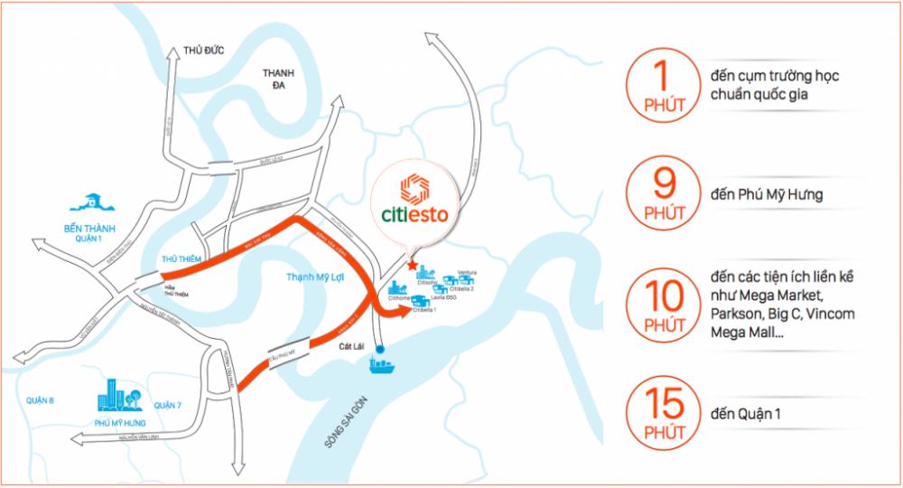 Citi Esto là chung cư được thừa hưởng nhiều ưu đãi nhất của Khu đô thị Cát Lái. Công trình tọa lạc ở trung tâm khu đô thị với nhiều dự án cao cấp khác của chủ đầu tư đang hoàn thiện.