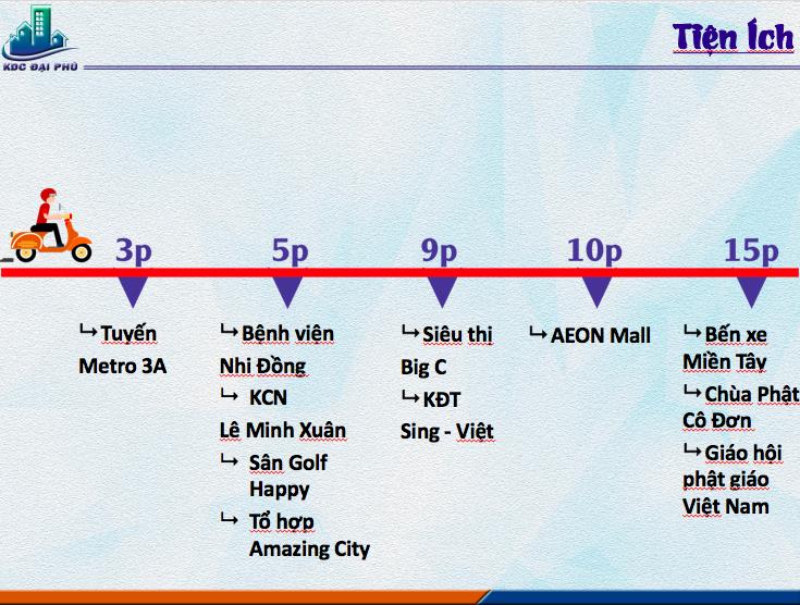 - Cách Tuyến Metro 3A,KCN Lê Minh Xuân,BV Nhi Đồng,Khu tổ hợp Amazing City,Sân Golf Happychỉ5 phút di chuyển