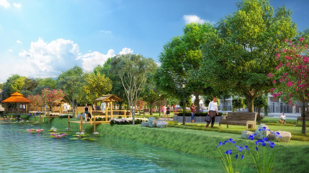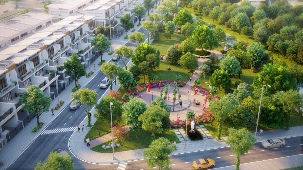 Dự án sở hữu không gian sống trong lành, xanh mát với các trục đường nội khu được những hàng cây tươi mát phủ xanh. Công viên nhiều cỏ hoa đem lại cho cư dân bầu không khí thanh khiết và tô điểm cho vẻ đẹp của những căn nhà phố xinh xắn.