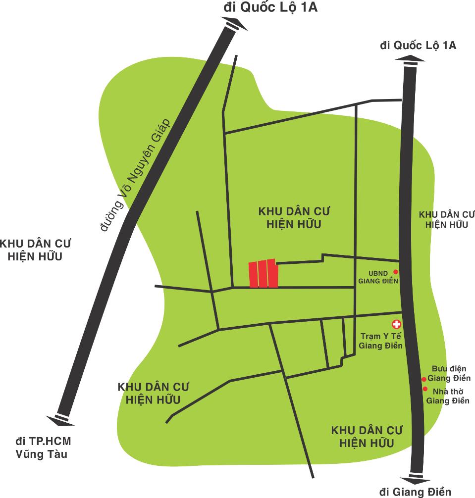 - Khu công nghiệp Giang Điền chỉ cách 1km