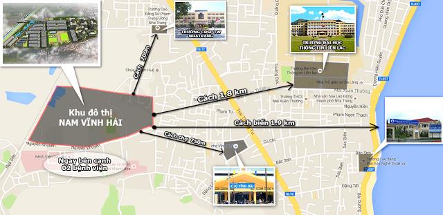 Khu đô thị Nam Vĩnh Hải tọa lạc trên mặt đường Nguyễn Khuyến và cạnh tuyến đường vành đai 2 của TP. Nha Trang, đã được quy hoạch có chiều rộng 39m. Dự án nằm trong khu vực có hệ thống cơ sở hạ tầng khu dân cư hoàn chỉnh. Đây là khu vực tập trung các hoạt động mua bán hàng hóa, đầu mối là chợ Vĩnh Hải. Bên cạnh đó, dự án nằm cách đường 2/4 - tuyến đường chính dẫn vào trung tâm TP. Nha Trang 500m. Do đó, cư dân sống tại Khu đô thị Nam Vĩnh Hải sẽ di chuyển khá dễ dàng đến công sở, trường học, mua sắm, giải trí…