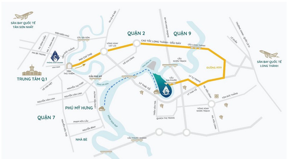 - Tuyến đường thủy với du thuyền và ca nô đem lại cảm giác trải nghiệm đỉnh cao cho cư dân, thời gian chỉ mất tối đa 40 phút cho 1 chiều đi hoặc về.
