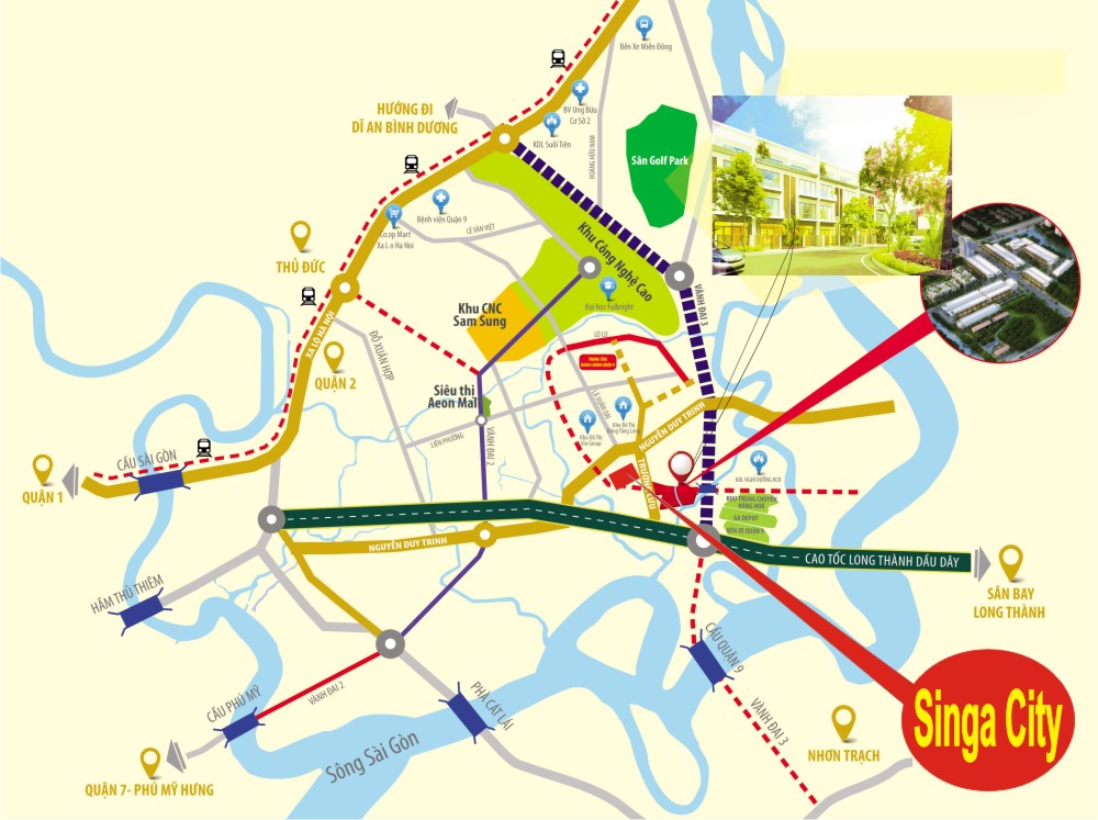 Được đánh giá là dự án sáng giá nhất quận 9 nhờ tọa lạc tại vị trí vô cùng đắc địa,Khu đô thị Singa Citytự hào mang đến cho cư dân môi trường sống trong lành, dịch vụ gia đình tiêu chuẩn 5 sao và một cộng đồng văn minh, thịnh vượng.