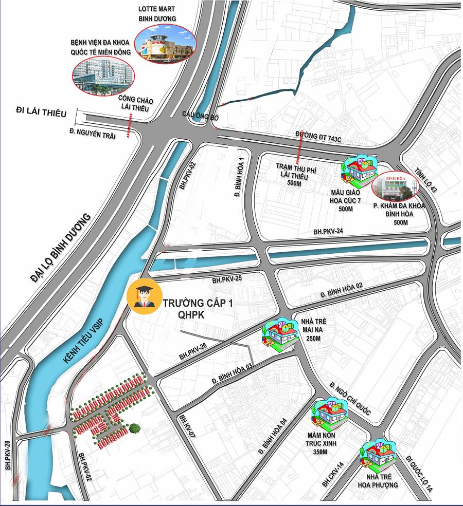 Kết nối tiện ích xung quanh dự án KĐT Bình Hòa