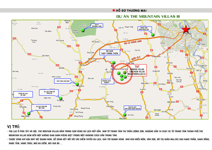 The Mountain Villas IIIđược triển khai xây dựng tại xóm Gừa, xã Cư Yên, huyện Lương Sơn, Hòa Bình do công ty Công ty cổ phần tư vấn đầu tư phát triển nhà vườn TAT làm chủ đầu tư.