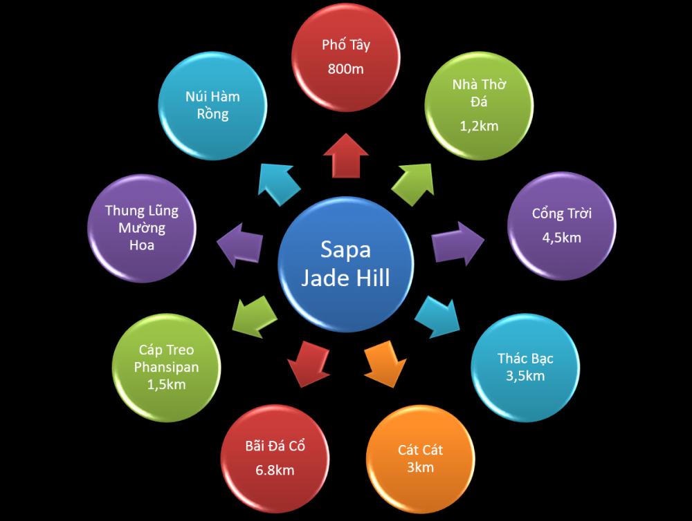 Sapa Jade Hillchỉ cách nơi nhộn nhịp nhất của thị trấn Sapa chưa đầy 1km, là điểm đến lý tưởng để mua sắm, thư giãn hay nghỉ dưỡng trong tương lai. Bên cạnh đó với sự phát triển, đầu tư cơ sở hạ tầng giao thông với tuyến cao tốc Nội Bài- Lào Cai rút ngắn quãng đường di chuyển từ Hà Nội tới Sapa, du khách nay chỉ mất 3h lái xe để tới đâynghỉ dưỡng cuối tuần.