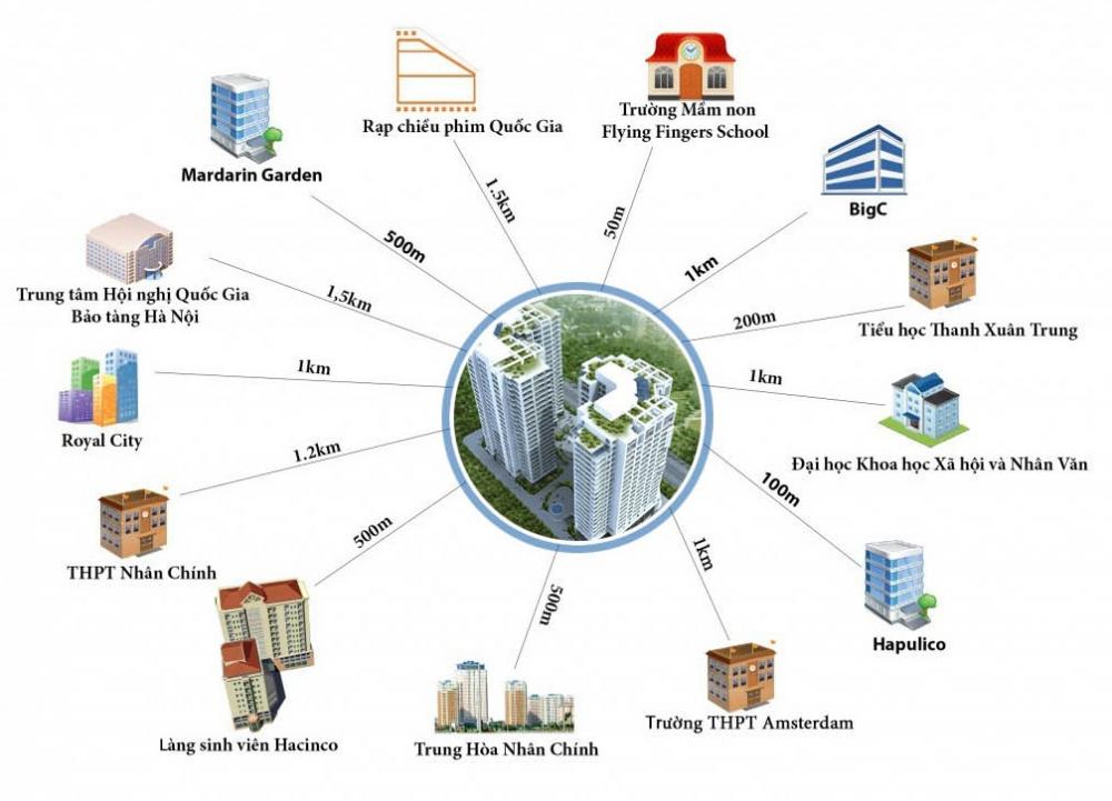 Dự án nằm ở vị trí thuận tiện khi thuộc tuyến đường chính nối quận Thanh Xuân với Khu đô thị Trung Hòa - Nhân Chính. Xung quanh dự án có rất nhiều dự án bất động sản, được nhận định là khu vực có tiềm năng phát triển lớn của Thủ đô Hà Nội.